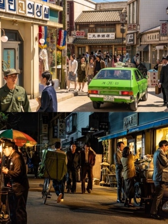 1977년의 분위기를 디테일하게 재현해 향수를 자극하는 배경과 의상 소품이 매력 포인트입니다